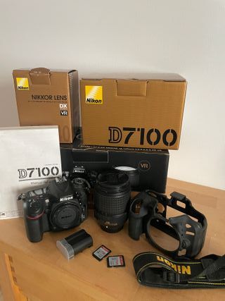 Se vende cámara réflex digital Nikon D7100 con lente Nikkor AF-S DX 18-140mm. Incluye caja original y accesorios. - Cuerpo de cámara Nikon D7100, con algun roze como se muestra en las fotos. Las dos pantallas llevan protector. - Lente Nikkor AF-S DX 18-140mm f/3.5-5.6 G ED VR, el enfoque manual no funciona. - Caja original de la cámara. - Caja original del lente. - Manual de usuario. - Batería. - 3 Tarjetas de memoria SD (8GB, 16GB y 64GB). - Correa para el cuello Nikon. - Funda de silicona de color negro. - 25149 disparos. Prefiero que se pruebe, pero hago envíos. La vendo por cambio de equipo.