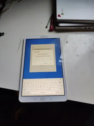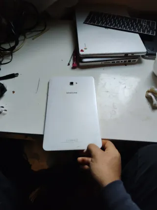 Tableta Samsung Galaxy A6 en color blanco. Ideal para uso diario. - Pantalla de 10.1 pulgadas. - Procesador Octa-core. - 32 GB de almacenamiento interno. - Cámara trasera de 8 MP y frontal de 2 MP. - Batería de 7300 mAh. Tiene cuenta Google.