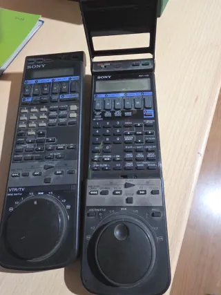 Dos mandos a distancia Sony para VTR/TV. - Uno de ellos es un mando VTR/TV con jog shuttle. - El otro mando es un modelo PMT-VEE. Lo mejor de Sony en su epoca vale para más aparatos de su marca. Se vende juntos o separados precio 25 euros los dos y cada uno a 15 euros
