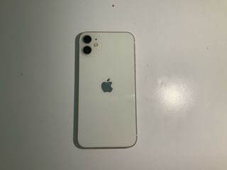 Teléfono móvil iPhone 11 en color blanco. - Diseño elegante y moderno. - Cámara dual en la parte trasera.