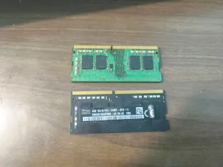 Dos módulos de memoria RAM DDR4 de 4GB cada uno. - Capacidad total: 8GB (2x4GB). - Velocidad: PC4-2400T (2400MHz). - Fabricante: SK hynix. - Modelo: HMA851S6AFR6N-UH.