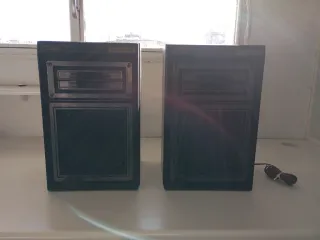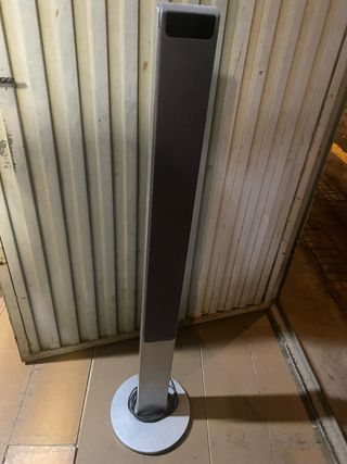 Altavoces de torre con un diseño elegante y moderno. - Acabado en color negro y plateado. - Base circular para mayor estabilidad.