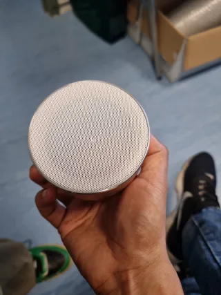 Altavoz portátil con conexión Bluetooth. - Diseño moderno y compacto. - Acabado en color gris y plateado. en muy buen estado. Sonido potente y claro, con muy buenos graves para su tamaño. Funciona perfectamente y se ha cuidado siempre. Ideal para casa u oficina.