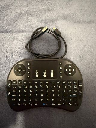 Mini teclado inalámbrico con touchpad integrado, ideal para controlar dispositivos a distancia. Incluye cable de carga. - Diseño ergonómico. - Teclas retroiluminadas para facilitar su uso en la oscuridad. - Compatible con múltiples sistemas operativos.