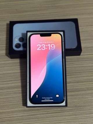 Teléfono móvil iPhone 13 Pro Max en color azul y plateado. - Diseño elegante y moderno. - Acabado premium.