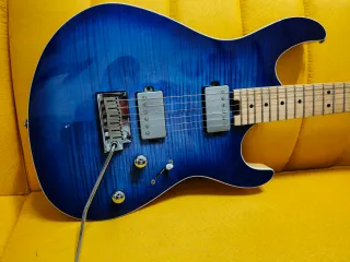 Guitarra eléctrica Cort G290 FAT con un acabado azul vibrante. - Cuerpo con tapa de arce flameado. - Mástil de arce. - Pastillas HSH. - Trémolo. - Puente flotante.