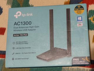 Vendo este adaptador WiFi de alta ganancia TP-Link Archer T4U Plus. Es perfecto si tu PC o portátil tiene una tarjeta de red antigua o si estás lejos del router y pierdes señal. No hgo envíos. Entrega en mano. Características principales: Velocidad AC1300: Hasta 867 Mbps en la banda de 5GHz y 400 Mbps en la de 2.4GHz. Ideal para streaming 4K y juegos online sin lag. Doble Antena de Alta Ganancia (5dBi): Las antenas son orientables, lo que permite captar señal incluso a través de varias paredes. Puerto USB 3.0: Conexión hasta 10 veces más rápida que el USB 2.0 convencional.