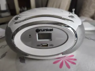 Reproductor de radio CD con conexión USB y compatibilidad MP3. Un dispositivo versátil para disfrutar de tu música. - Diseño moderno en blanco y plata. - Puerto USB para reproducir archivos digitales. - Con cable o a pilas. - Entrada para auriculares. Suele fallar la lectura del CD, es el único inconveniente que tiene. Todo lo demás funciona correctamente.