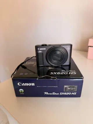 Cámara compacta Canon PowerShot SX620 HS en color gris. Ideal para capturar tus momentos con gran detalle. - Zoom óptico 25x. - Sensor CMOS de 20.2 megapíxeles. - Grabación de vídeo Full HD. Está nueva, sin apenas uso. Incluye tarjeta sd. Caja, batería y cargador originales.