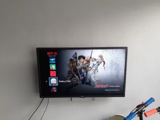 Televisor inteligente LG de 32 pulgadas. Esta en perfectas condiciones solo que no tiene pie y tiene como una rayita azulada en la parte superior derecha de 8cm. Se vende con el aplique para la pared que está incluido en el precio.
