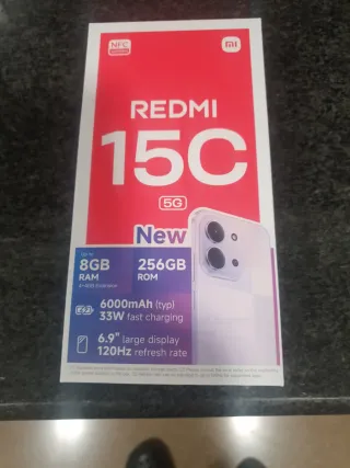 Teléfono móvil Xiaomi Redmi 15C con gran capacidad de almacenamiento. PRECINTADO - 8GB de RAM (ampliable 4+4GB). - 256GB de ROM. - Batería de 6000mAh (típica). - Carga rápida de 33W. - Pantalla grande de 6.9 con tasa de refresco de 120Hz. - Soporte NFC.