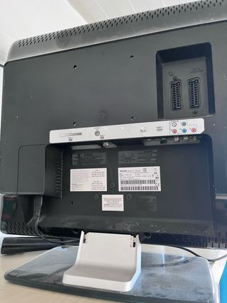 Televisor Sanyo en color plata. Funciona perfectamente con TDT. - Incluye cable de alimentación. - Botones de control en el lateral.