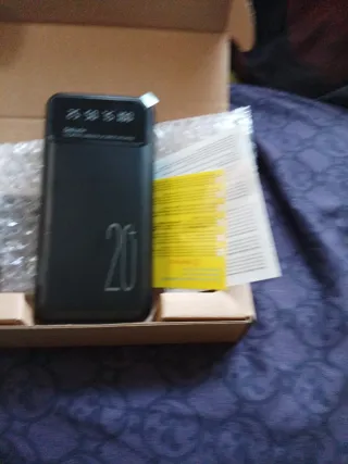 Cargador portátil tipo Power Bank. - Incluye notas y advertencias de uso. - Mensaje A NICE GIFT! en la caja.