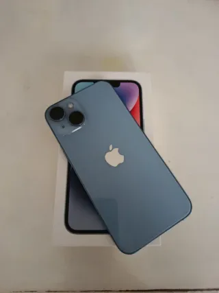 Teléfono móvil Apple iPhone 14 en color azul. - Diseño elegante y moderno. - Cámara dual en la parte trasera. - Batería 77% Funciona todo perfectamente Con caja original