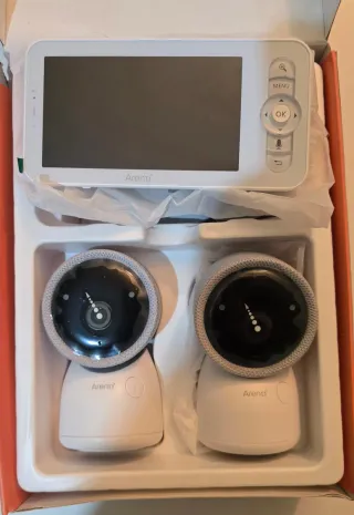 Kit de 2 cámaras ARENTI AInanny Plus monitor de bebé 2 cámaras 720p 5" monitor LCD WiFi 3MP Kit de dos cámaras de vigilancia Arenti AInanny Incluye 2 cámaras con forma de conejito y una pantalla de 5 pulgadas Resolución HD 720P
