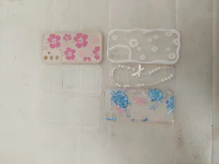 Lote de cinco fundas para Samsung Galaxy A25. - Funda con diseño de flores rosas. - Funda transparente con margaritas. - Funda transparente con tortugas marinas y estrellas de mar. - Funda transparente. - Funda transparente con bolsillo para guardar tarjetas