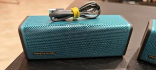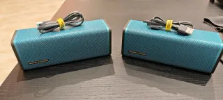 Par de altavoces Bluetooth Thonet & Vander Frei Topp en color azul. Incluyen cables de carga. - Diseño moderno y compacto. - Ideales para escuchar música o podcasts. - Emparejamiento TWS para usar en duo - 30 horas de autonomía