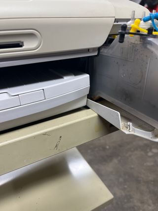 Impresora multifunción de la marca Develop, modelo ineo 284e. Combina diseño en negro y beige. - Bandejas de papel. - Panel de control. - Ruedas para fácil movilidad. - Hay que cambiar una pieza que cuesta 100€ ya que se engancha al imprimir por eso el precio
