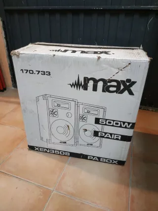Se vende pareja de altavoces Max XEN3508 PA BOX. Necesitan amplificador aparte. - Modelo: XEN3508 (woofer 8 pulgadas) - Potencia: 500W - Tipo: PA BOX