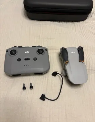 Drone DJI Mini 2 SE en color gris, listo para volar. - Incluye mando de control remoto. - Cable de conexión. - Hélices de repuesto. - Estuche de transporte -1 Batería Todo en perfecto estado, listo para usar. En su caja original y papeles de instrucciones de uso.
