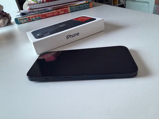 Teléfono móvil iPhone 13 en color azul marino. Se encuentra en muy buen estado. 🟢La pantalla está intacta: no tiene ralladas y funciona perfectamente 🟢 Las cámaras funcionan perfectamente 🟢 128 GB 🟢 Todos los datos están borrados (está como nuevo) 🟢 Tengo un protector sin poner 🟠 Todo es original (caja incluida) excepto el cable 🟠 77% salud de batería El único desperfecto que tiene es que se le ha saltado la pintura en algunos laterales.