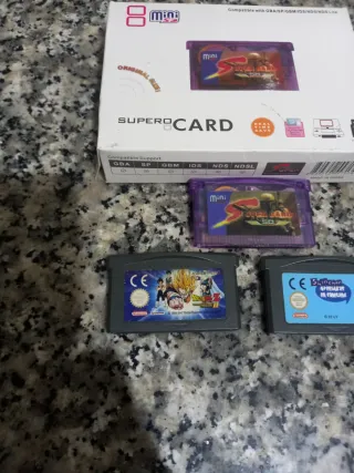 Pack de Supercard Mini para consolas portátiles. TRATO EN MANO NO HAGO ENVIOS - Incluye Supercard Mini no se si funciona - Compatible con GBA, SP, GBM, NDS, NDSL. - Cartuchos de juegos incluidos.