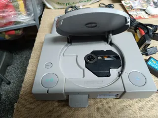 Consola clásica Playstation 1 en color gris. - Incluye mando original. - Cables de conexión AV y RF Switch. - Tiene en el cable del mando un pelado que no afecta al funcionamiento, simplemente se ha cortado la protección.(Última foto). - 3 juegos de regalo.