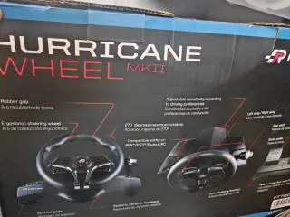 Volante de carreras FR-TEC Hurricane MKII. - Compatible con PS4, PS3, Switch y PC. - Diseño ergonómico para mayor comodidad. - Botones y palancas accesibles.