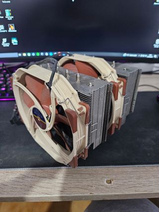 Potente disipador de CPU de doble torre con ventiladores. - Doble torre de aletas de aluminio. - Dos ventiladores. - Diseño de alta gama.