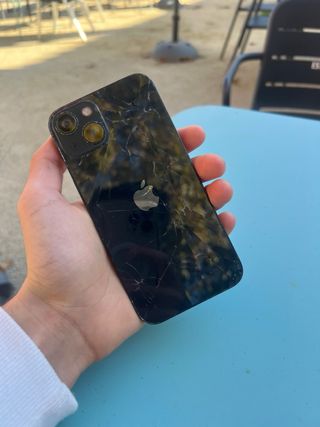 Teléfono móvil iPhone 13 en color azul marino. La pantalla trasera está rota, no afecta en nada al movil. - Cámara dual. - Diseño elegante. -Batería al 100%. -Algo negociable -256 gb