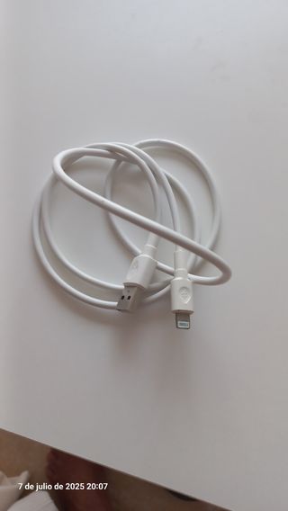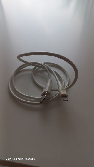 Cable cargador para móvil Apple, en perfecto estado. - Dos cables incluidos. - Color blanco. - Conectores USB-C y Lightning.