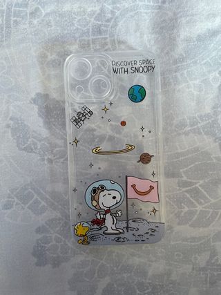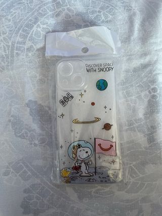 Funda transparente para iPhone 13 Mini con diseño de Snoopy explorando el espacio. - Ilustración de Snoopy y Woodstock astronautas. - Motivos espaciales como planetas, satélite y estrellas. - Funda sin usar. - se vende por una confusión en su compra, no va bien con mi teléfono, está por estrenar.