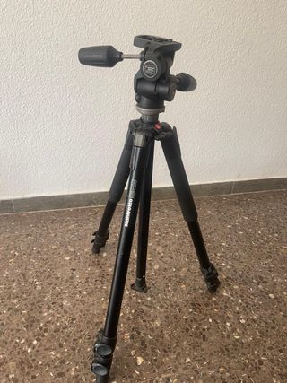 Trípode profesional Manfrotto 055XB. - Construcción robusta y duradera. - Diseño de tres patas para máxima estabilidad. - Mecanismos de ajuste para diferentes alturas y ángulos. - No tiene la zapata ni tampoco funda. Tiene bastante uso.