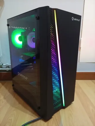 💻 PC gaming listo para usar y bien cuidado Ordenador en caja ATX negra con panel frontal de vidrio templdo, iluminación RGB y paneles magnéticos antipolvo, excelente flujo de aire y refrigeración por ventilador. Equipo equilibrado para gaming en 1080p, estudio o uso diario. Listo para enchufar y usar. El disco esta fomsteado y sa intalda una version de windows 11 optimizada pero si no puedo instalr cualquier versión e windows que desees Componentes: • Intel i7-2600K • 16 GB RAM DDR3 (2×8 GB a 1600 MHz) • SSD Crucial 250 GB • Placa base MSI • GTX 1060 6 GB • Fuente de alimentación 700 W Panel frontal y placa base con múltiples p