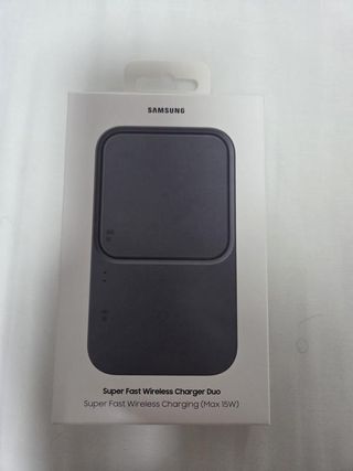 Cargador inalámbrico dúo para varios dispositivos. - Permite cargar un smartphone y un smartwatch o auriculares simultáneamente. -No negociable, en mano. - NUEVO, sin usar, de febrero del 2026, en su caja sin abrir. - Factura de Samsung.