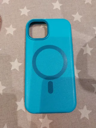 Funda protectora nueva y sin usar para iPhone 13 y iPhone 14. Diseño en color azul. - Compatible con MagSafe. - Material resistente.