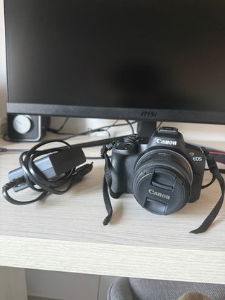Camara Canon EOS R50 en perfecto estado. Muy poco uso la vendo porque la compré por capricho y no la he acabado usando prácticamente. Con cable de carga bateria original
