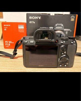 Cámara mirrorless Sony Alpha 7 III con sensor Full Frame y montura E. - Incluye objetivo Sony FE 50mm F1.8. - Caja original de la cámara y del objetivo. - Tarjeta SD SanDisk Extreme Pro 64Gb 170MB/s Con menos de 1000 disparos, como nueva.