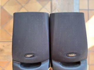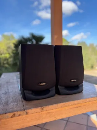 Par de altavoces Philips en color negro. Modelo:FB 385 4303 308 40691 Buen estado, frontal con la tela de protección intacta.