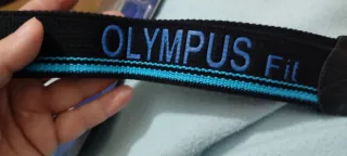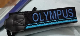 Correa negra con detalles en azul. Parte ancha 3'5cm de ancha. Enganche 1'1cm de ancho. Largo total de correa 130 cm aproximadamente.