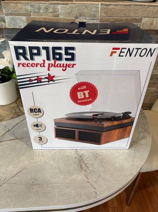Tocadiscos FENTON modelo RP165B con receptor Bluetooth. - Salida RCA. - Altavoces estéreo integrados. - Tres velocidades de reproducción.
