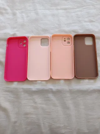 Pack de cuatro fundas para iPhone en tonos pastel. - Funda color fucsia. - Funda color rosa palo. - Funda color melocotón. - Funda color marrón.