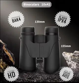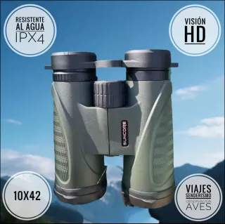 Prismáticos SUNCORE con visión HD y prismas BAK4. Nuevos a estrenar. - Resistencia al agua IPX4. Lluvia fina y salpicaduras. - Aumento 10x42. - Gran luminosidad por sus prismas. - Viaje, senderismo, observación aves, aventura. - Incluye bolsa de trasporte con correa. - Incluye correa para el cuello. - Incluye 2 tapas oculares. - Incluye 2 tapas o objetivos. - Corrector dioptrías ocular derecho. - Uso con gafas y sin gafas, gracias a sus oculares giratorios. - Prismaticos nuevos a estrenar. - Más prismáticos en mi perfil. Nikon, Olympus, Zeiss, Soviéticos, Rusos, aventura, telescopio, binocular.
