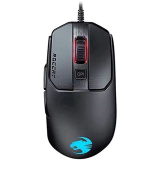 Ratón para juegos Roccat Kain 120 con un diseño ergonómico y un acabado elegante. - Diseño en color negro con detalles en azul. - Rueda de scroll con iluminación. - Botón DPI para ajuste de sensibilidad.