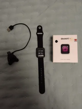 Reloj inteligente con correa. - Incluye cable de carga. - Diseño moderno y funcional.