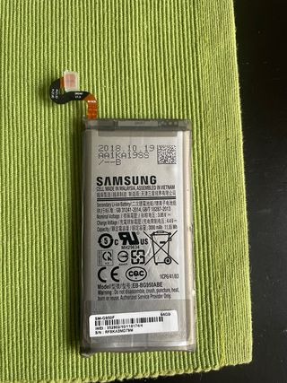 Batería de ion-litio secundaria para Samsung Galaxy S8. - Modelo: EB-BG950ABE - Capacidad: 3000 mAh 11.55 Wh - Voltaje nominal: 3.85 V - Fabricada en Malasia, ensamblada en Vietnam. - Fecha de fabricación: 2018.10.19