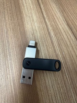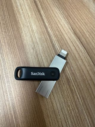 Unidad flash SanDisk iXpand Flash Drive Go con 64GB de capacidad. - Diseño plateado y negro. - Conector Lightning y USB 3.0 para iPhone/iPad, PC y MAC.