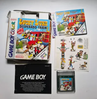 Juego de Lucky Luke: Desperado Train para Game Boy Color. Incluye la caja original, manual de instrucciones y pegatinas. Funciona correctamente, caja de cartón bastante usada y manual de nintendo negro con dobleces. - Juego Lucky Luke: Desperado Train - Caja original - Manual de instrucciones - Pegatinas de Lucky Luke Comics