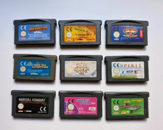 9 cartuchos originales para gba funcionando correctamente. Incluye los siguientes juegos: -Shrek super slam -Shrek 2 -Superman countdown to apokolis -spirit -dragons rock -Deep sea adventures -Super monkey ball Jr. -barbie secret agent -Mortal kombat deadly alliance