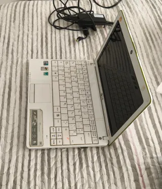 Vendo portátil LG X120 (Netbook) color blanco y verde. Ideal para quien busque repuestos (teclado, carcasa, placa base) o quiera restaurarlo. ⚠️ LEER DETALLES IMPORTANTES: SIN DISCO DURO: El equipo se entrega sin disco duro por motivos de privacidad. Para que funcione, el comprador deberá instalarle uno (SATA). PANTALLA: Tiene una franja de líneas verticales en la parte izquierda que impide la visión en esa zona (ver fotos). El resto de la pantalla enciende y se ve. BATERÍA: No retiene carga. El portátil solo enciende si está conectado a la corriente. CARGADOR: El cable tiene un desperfecto en el protector de plástico (se ve en las